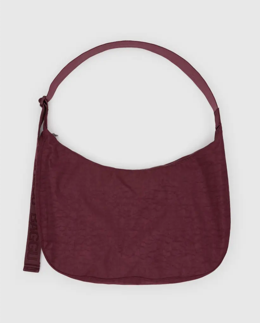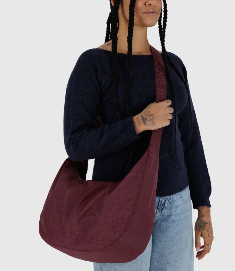 Un bolso en forma de media luna más grande, lo suficientemente amplio para llevar una laptop y todos tus esenciales. Incluye un bolsillo interior con cierre que facilita mantener todo organizado.
