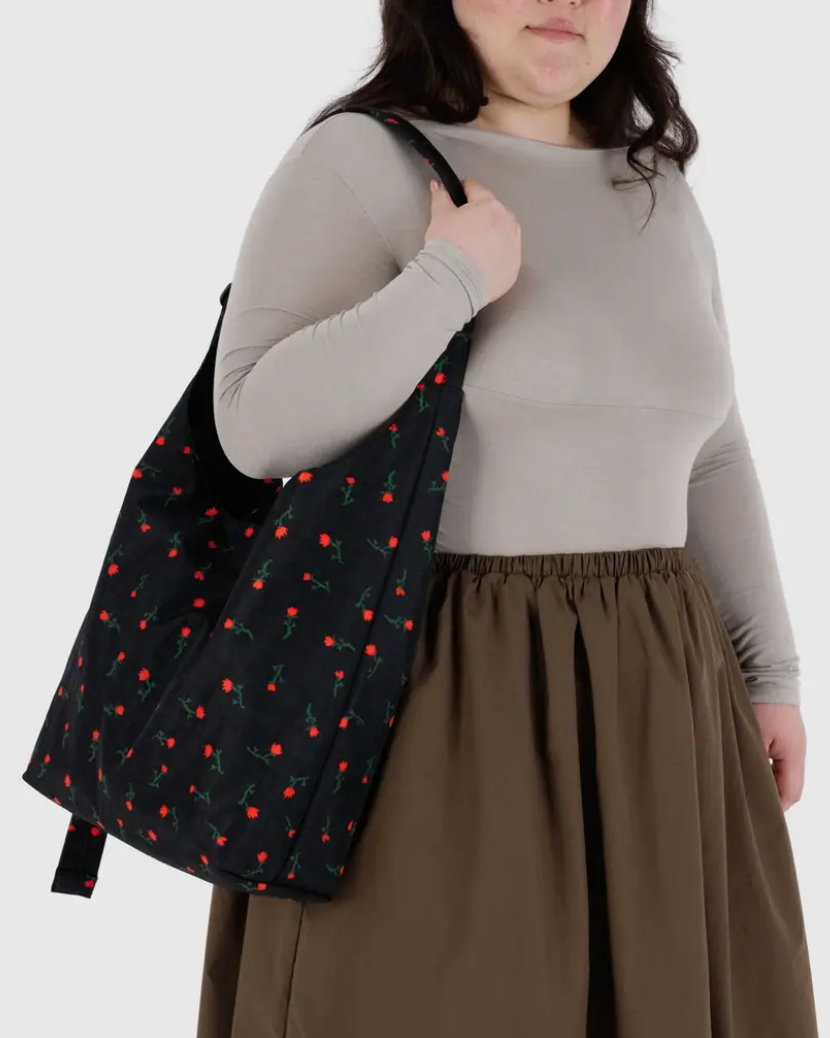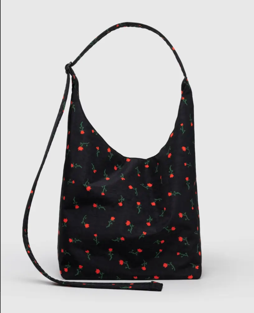 Una bolsa de nylon suave y flexible, con correa ajustable. Bolsillo interior con cierre y broche magnético.