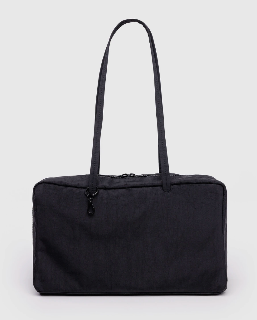 Una versión más grande de nuestro bowler bag, diseñada para personalizarse con accesorios. Cuatro aros para dijes y un gancho giratorio te permiten decorarla desde cualquier ángulo. Su interior amplio incluye un bolsillo con cierre y espacio suficiente para llevar más que lo esencial.