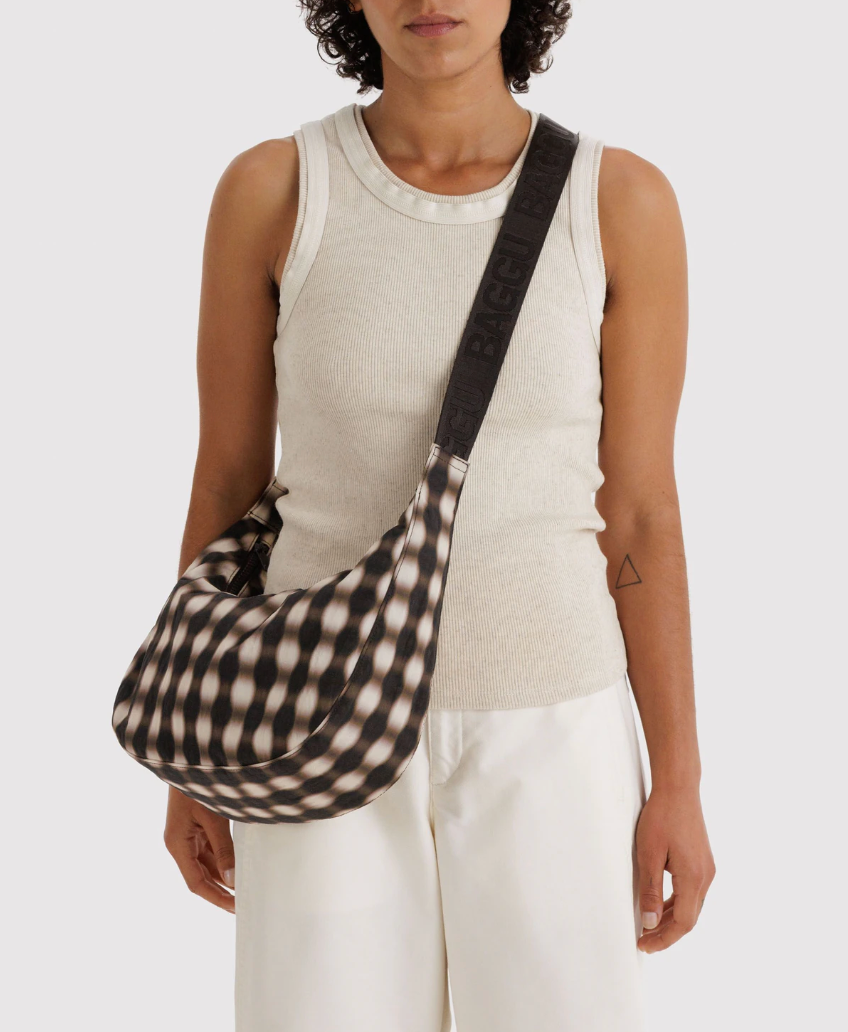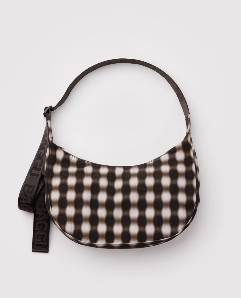 Medium Nylon Crescent Bag - Blurred Gingham Brown