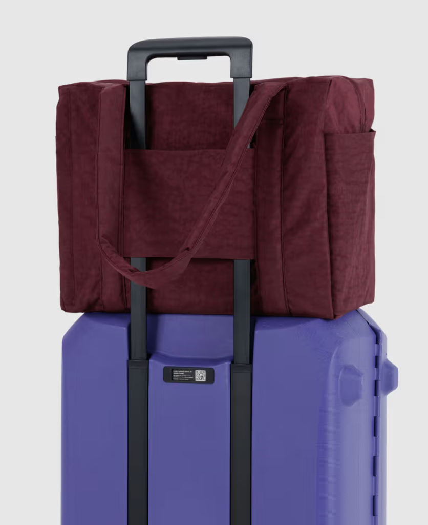 Una bolsa de viaje optimizada para volar: cabe debajo del asiento del avión, encima de tu maleta con ruedas o sobre tu hombro. Los bolsillos exteriores mantienen tus esenciales de viaje al alcance, incluyendo un bolsillo tecnológico que acomoda una laptop de hasta 16”, y bolsillos laterales para tu botella de agua y pase de abordar. La bolsa se guarda fácilmente doblándola dentro de su propio estuche interior desmontable.